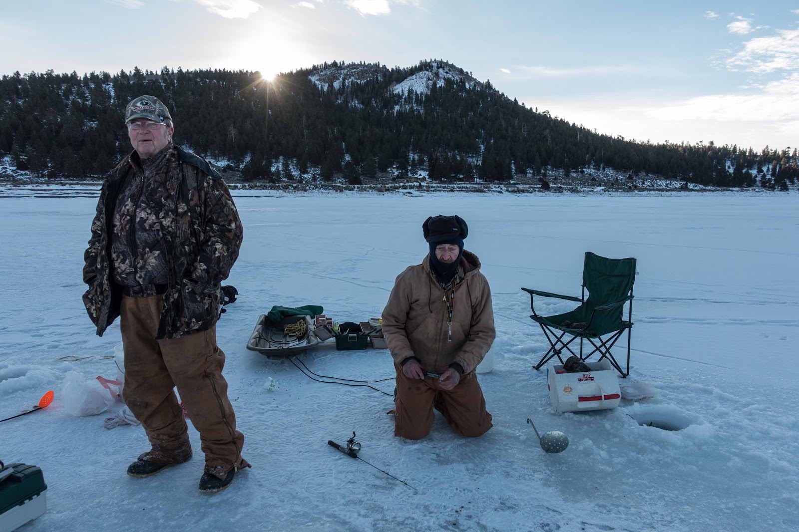 A week and a half later I was lucky to get another skate when we went to Bryce Canyon. I saw Panguitch Lake on the map and decided to check it out early morning. Had to walk about 80m onto the lake over snow to get to the hard ice. Bit bumpy but a good skate with the hockey skates. Chatted to a couple of ice fishermen.